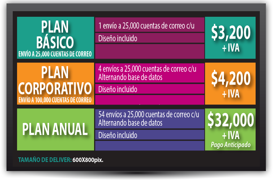 | Base de datos Publex Deliver actualmente cuenta con registro de más de 600,000 cuentas de correo electrónico en el estado de Veracrusz, certificados ante la Notaría Pública 21 Contamos con 125,000 cuentas de correos electrónicos en la zona Conurbada Veracruz-Boca del Río; y 475.000 del resto de las ciudades del Estado de Veracruz, además de la Ciudad de México, Puebla, Nuevo León, Oaxaca, San Luis Potosí, Tabasco y Tamaulipas. El 55% de nuestros correos pertenecen al sexo masculino, mientras el 45% al sexo femenino. Universalidad El e-mail marketing da la posibilidad de contacto inmediato con cualquier parte del mundo pudiendo manejar cualquier peculiaridad sin tener en cuenta las condiciones distintas de cada país (complejidad de gestión de la comunicación por las múltiples tarifas, medios a utilizar, modos de transmisión y sobre todo la gestión de tiempos de recepción de las comunicaciones) Es un atributo esencial del correo electrónico, que se pone al servicio de uno de los propósitos del marketing directo. No hay ningún otro medio que posibilite la universalidad a un costo tan extraordinariamente bajo. |